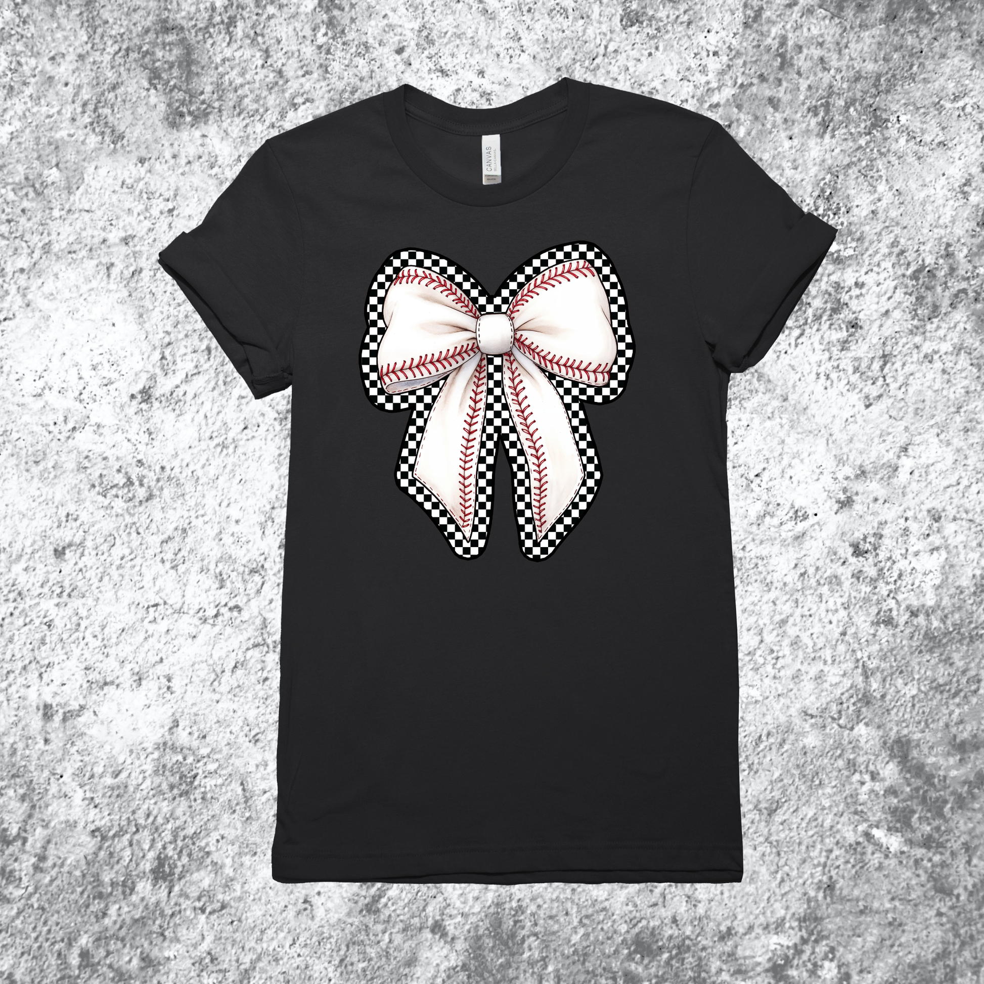 Our Checkered Baseball Bow Tee was made for baseball moms and girls who love a little flair in the stands.